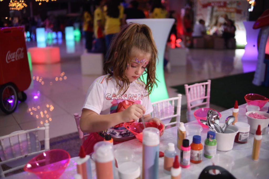 Lorena se divertiu a tarde inteira com seus amigos em meio as atividades diversas conduzidas pela Curumim, oficina de slime Carol Arteira, Customização de abadá by Color Girl e salãozinho de beleza by Vbeauty.